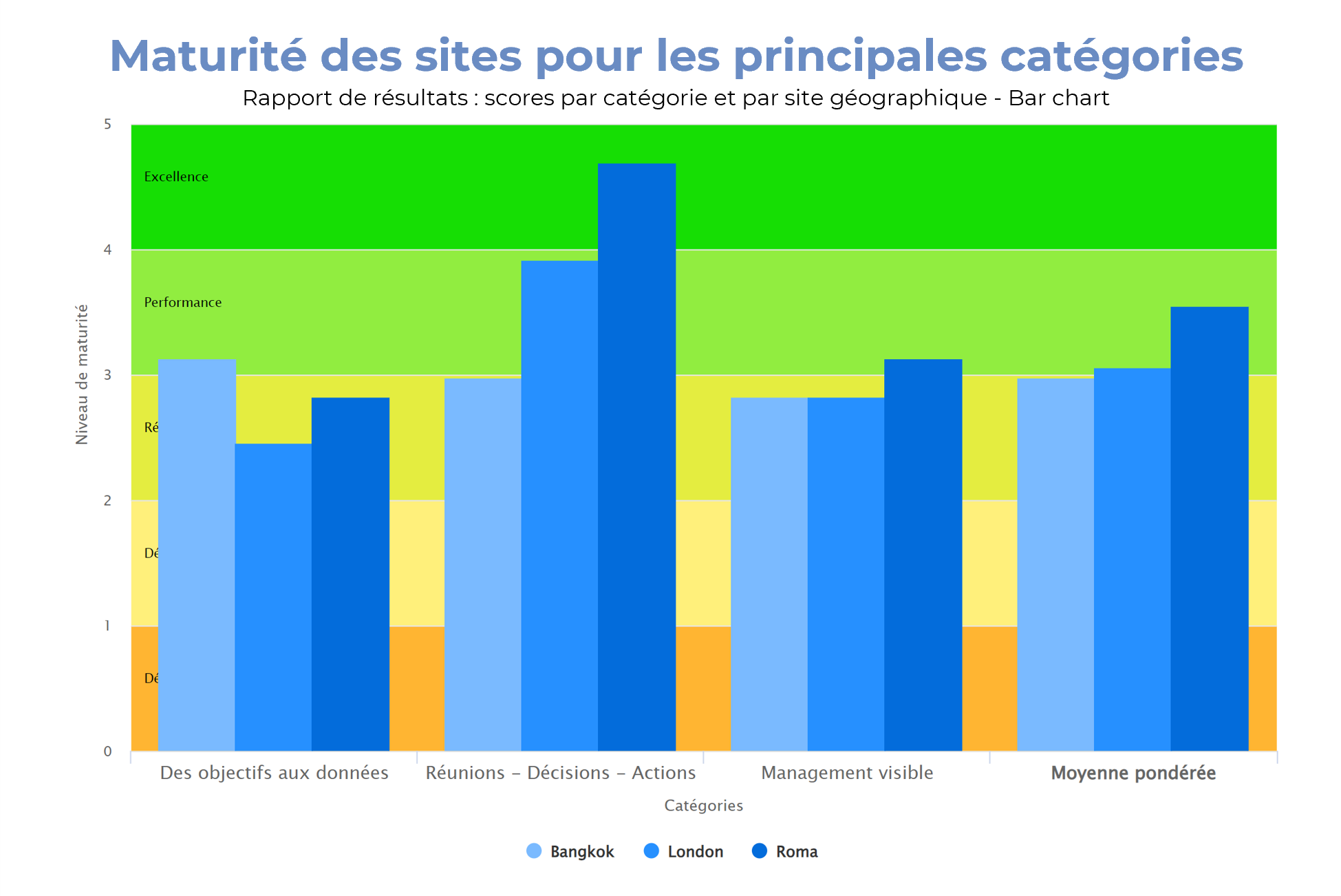 Comparez la performance par zone ou niveau de votre organisation (pays, site, fonction, niveau hiérarchique)